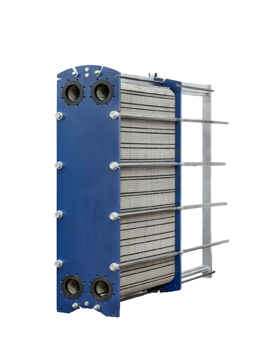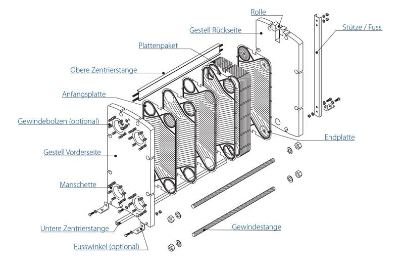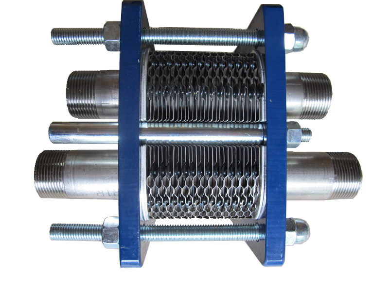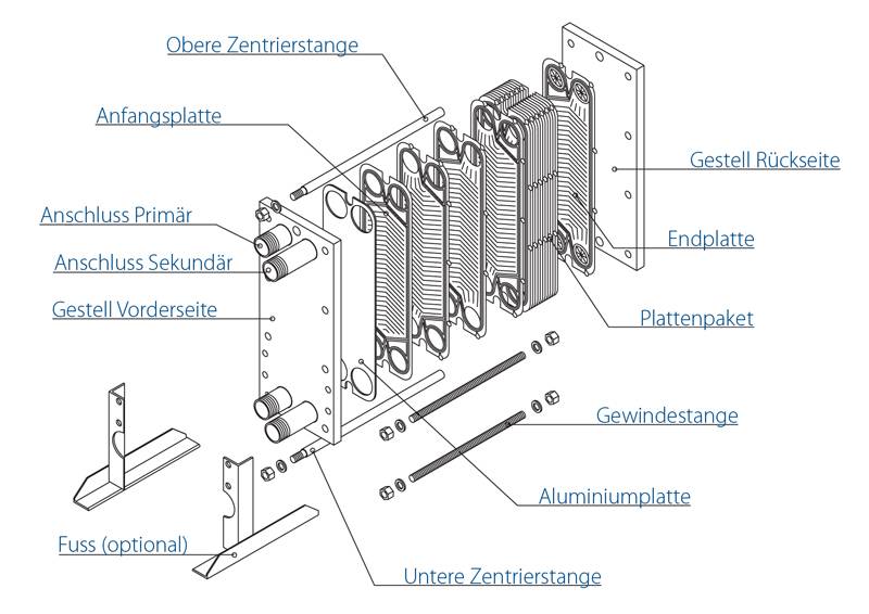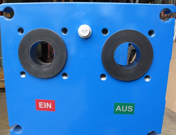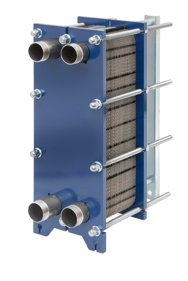 Plattenwärmetauscher in geschraubter (gedichteter) Ausführung. Kompakte Bauweise.