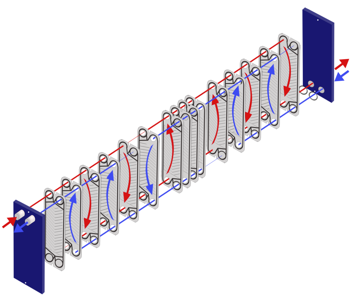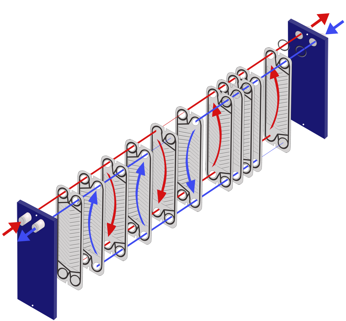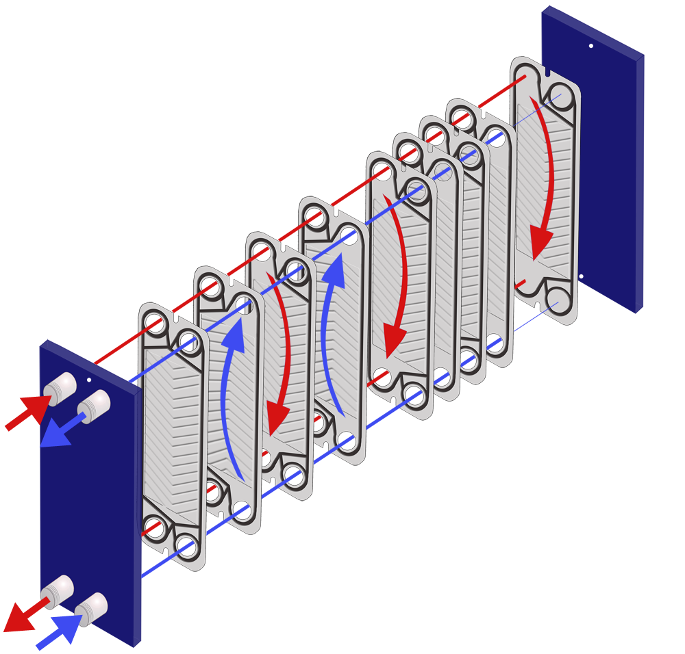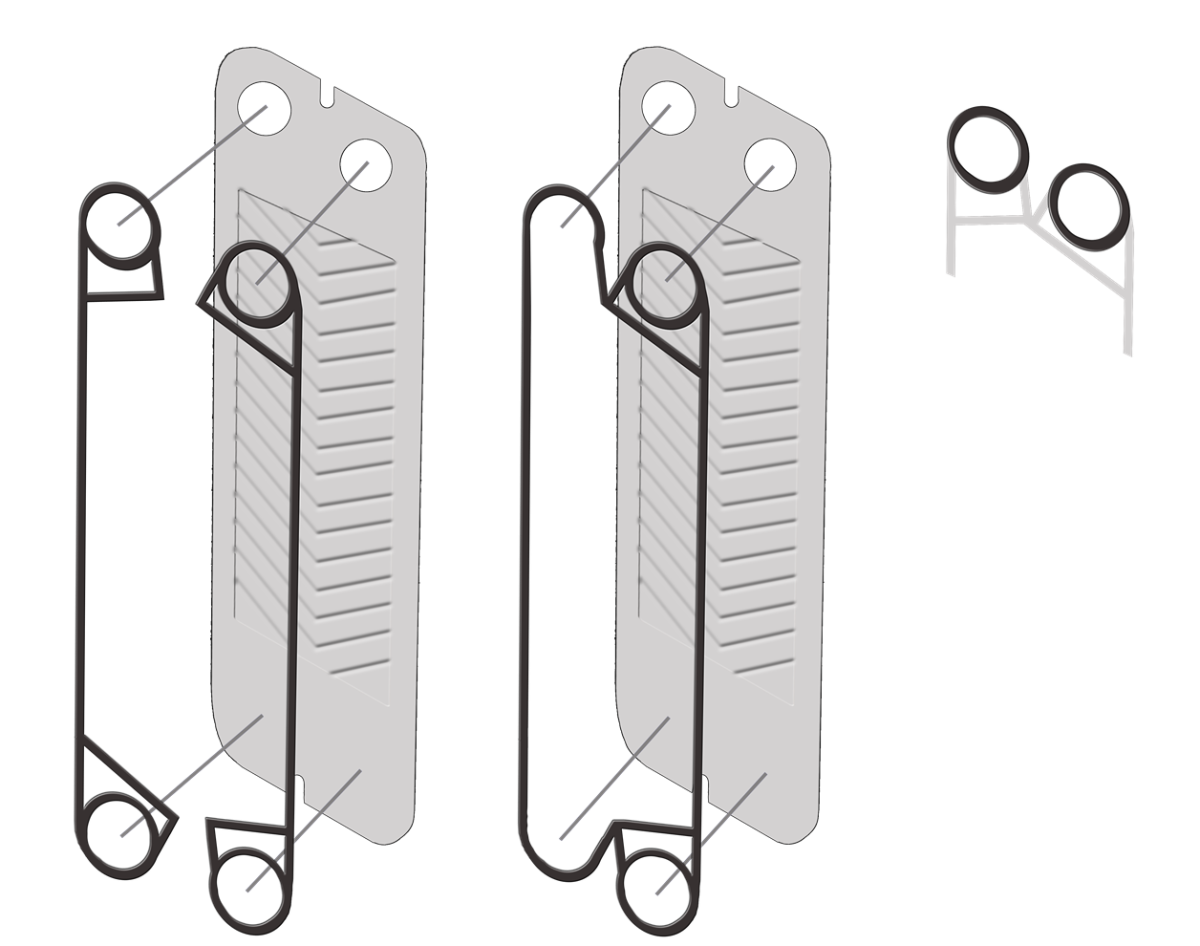 Wärmetauscher-Platten in Edelstahl V4a/V2a, Titan. Dichtungen Nitril, EPDM, Viton, geklebt oder eingelegt (kleberlose Clips-Systeme).